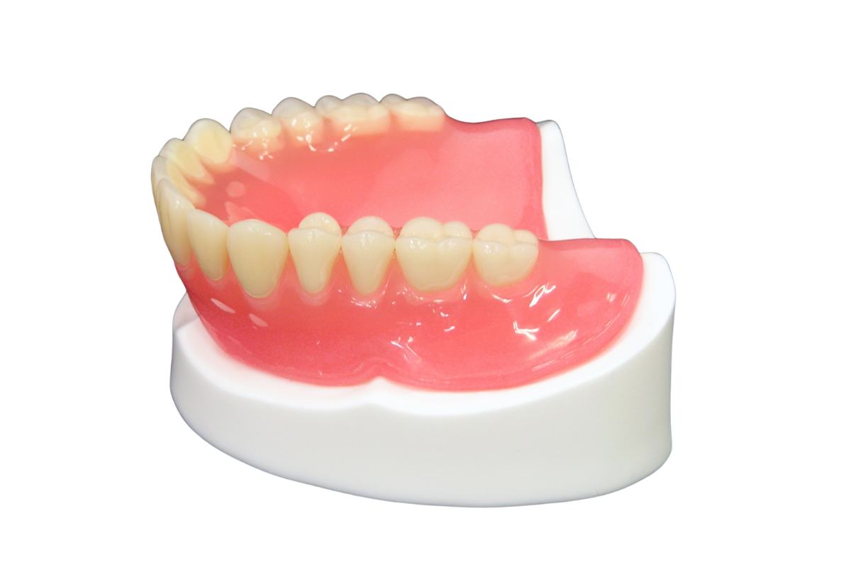 歯ぐきに触れる部分がレジン(プラスチック)で作られた、保険適用の入れ歯です。